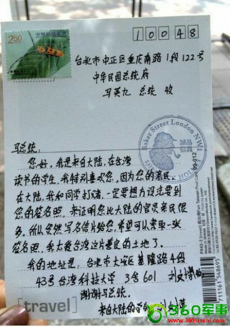 收到“马总统”的签名玉照一张~吼吼~~厚颜无耻地直接写信给总统府马英九,说喜欢他,要签名照。果然,三天后收到了回信和签名玉照,还附上了福袋一个~激动吖,今天是签名日吗?