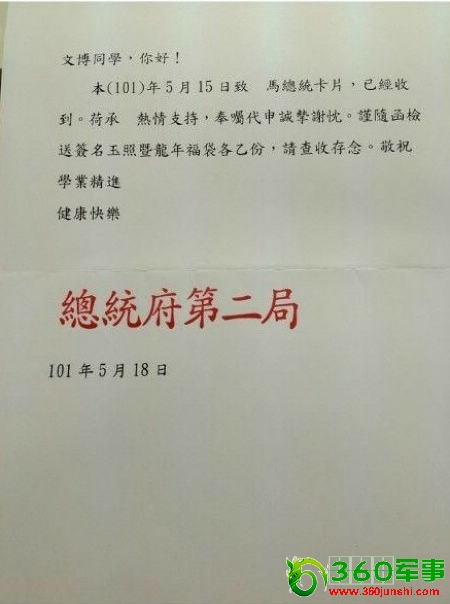 快看:大陆学生收到“马总统”的玉照了【图】(2)