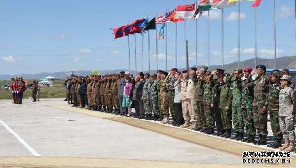 •   资料图:2011年7月31日,在蒙古首都乌兰巴托,包括军事演习参加国和观察员国在内的各国军事代表团出席开幕式。当日,“可汗探索-2011”多国维和军事演习在距首都乌兰巴托以西65公里处的蒙古国武装力量培训中心拉开帷幕,来自蒙古国、美国、韩国、印尼、柬埔寨、印度等国的600多名士兵参演。新华社记者黄龙杰摄