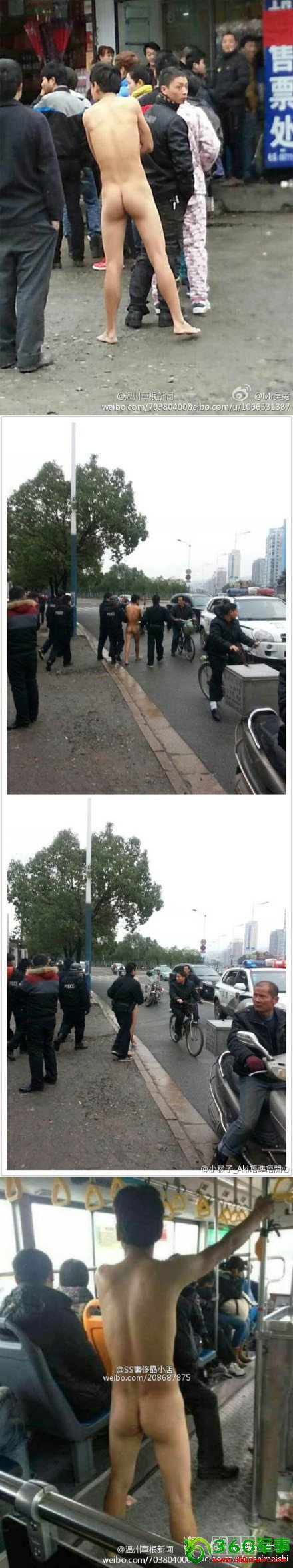 温州网讯昨天上午10时,在温州双屿下寅火车票代售点,一名男子全裸排队买票。之后有群众报了警,该裸体男子被警察带走。另据网友微博爆料,该裸体男子昨天上午还出现在61路公交车上。