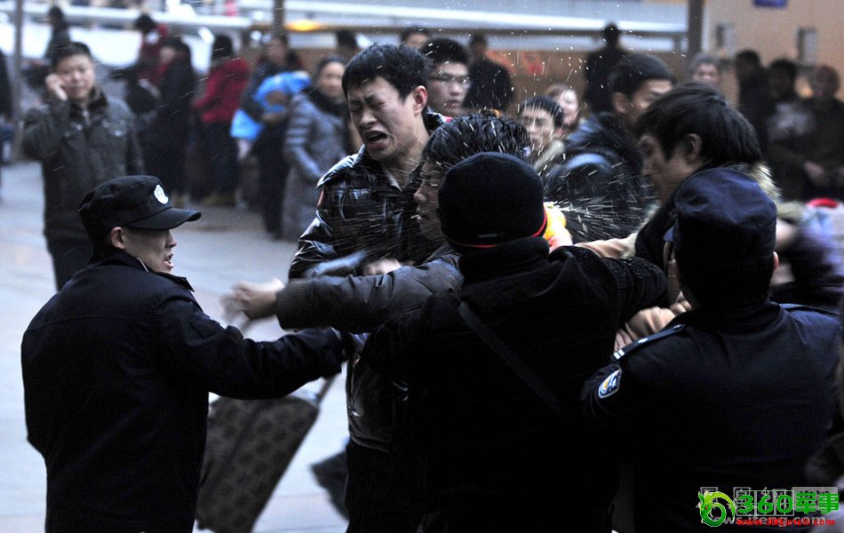 2012年1月9日,成都火车站,购票的乘客和协警因购票问题发生冲突。