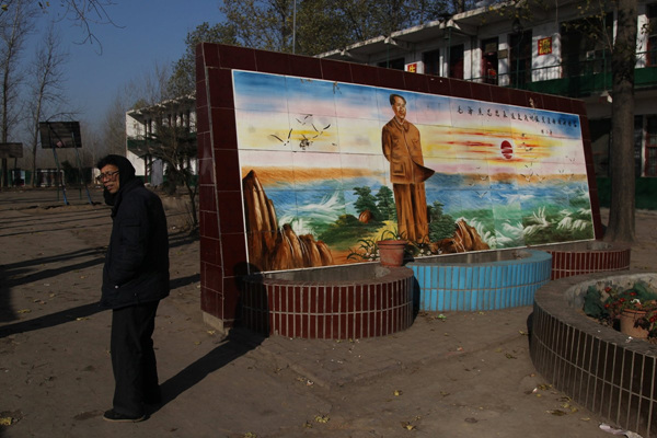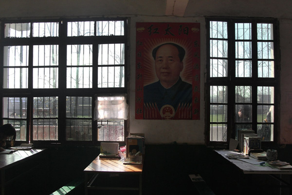 2012年11月27日,河南省周口市淮阳县四通镇民主中小学,一件教室挂着毛泽东像。
