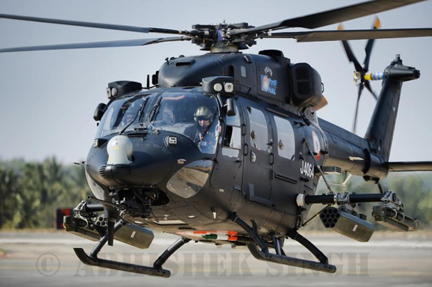 印度军方近日接收了以北极星”(Dhruv)轻型高空直升机为基础的国内首款武装直升机楼陀罗'(Rudra)。该机配备有一门20毫米口径的自动塔炮,还可挂载8枚制导反坦克导弹或70毫米口径的非制导火箭炮,其反潜战(ASW)的版本可搭载深水声纳装置和两颗鱼雷。