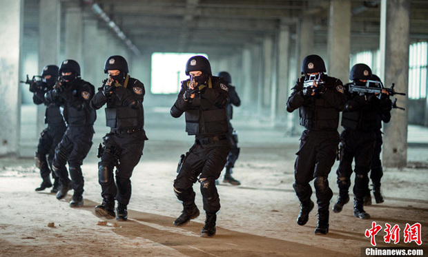 2月28日,安徽省淮北市公安局特警支队干警在进行“巷战”反恐课目演练。当日,安徽省淮北市公安局特警支队开展春季“巷战”反恐科目演练,现场进行了特警战术动作、处置群体性事件队形演练和劫持人质暴力案件处置等7个课目的演练,提升了特警的战斗能力。