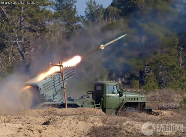 近日,来自乌克兰陆军部队第93机械化旅的士兵展开了一场自行火箭炮射击训练。训练中该部队出动了多辆火箭炮车,对目标实行了火力覆盖打击。