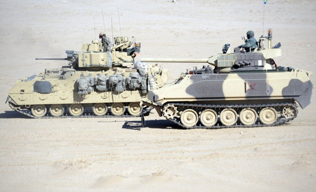 图片 美国陆军M2A3新型战车群戈壁实战演练(1)(4)_188足球比分直播_搜狐体育-在线|平台