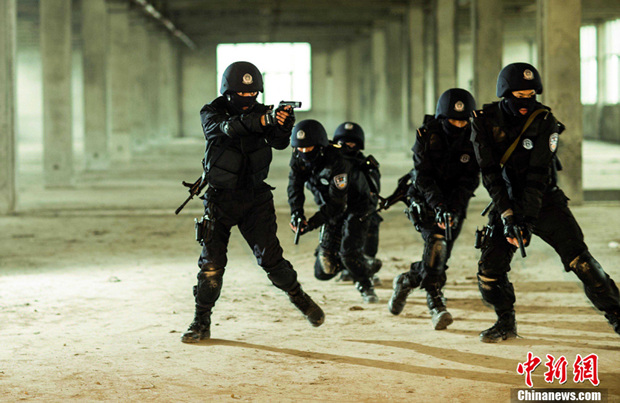 实拍特警“巷战”反恐演练(1)(2)