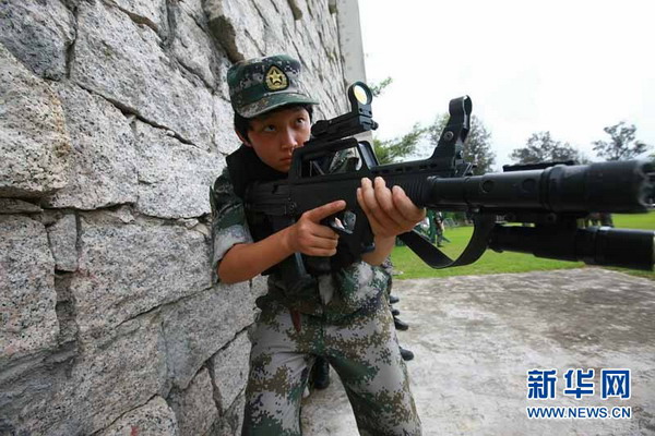 演兵场上,女队员们鱼跃翻滚,干净利索的完成了隐蔽接敌、楼内搜索、捕俘歼敌等一个个反恐训练课目。今年初部队受命筹组陆军首支女子特战排,他们从应征入伍的众多报名者中遴选出上百位候选队员,经过5个月体能、搏击、射击、攀登等内容的封闭式强化训练,期间又先后组织了6次比武选拔,最终仅50人脱颖而出。据悉,这些队员均是“90后”,98%具备大专以上学历,年龄最小的才18岁。