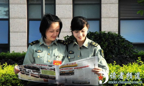 美丽可人的军中姐妹花休息期间不忘卖萌(1)